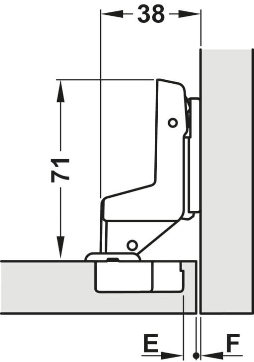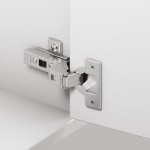 Zintegrowany hamulec ukryty w puszcze zawiasu zapewnia ciche i delikatne domykanie, a dzięki regulacji siły hamulca możemy dopasować charakterystykę hamowania do małych, średnich i dużych frontów meblowych.
