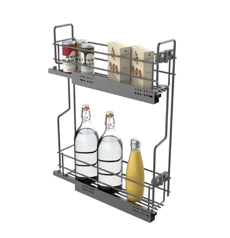 Kosz Cargo Matrix S 150 w kolorze antracytowym przeznaczony jest do wąskich szafek o szerokości korpusu 150 mm. Model dwupoziomowy wyposażono w prowadnice Matrix S35 z pełnym wysuwem i zintegrowanym hamulcem.