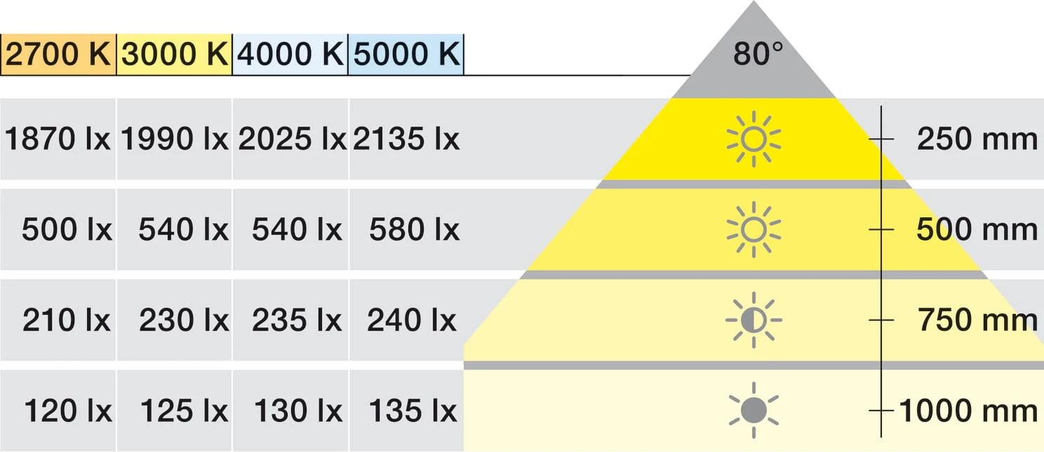 Informacje dodatkowe: Stopień ochrony IP45 obniżany jest do IP20 w przypadku montażu nawierzchniowego lub wbudowania z otworem przelotowym.