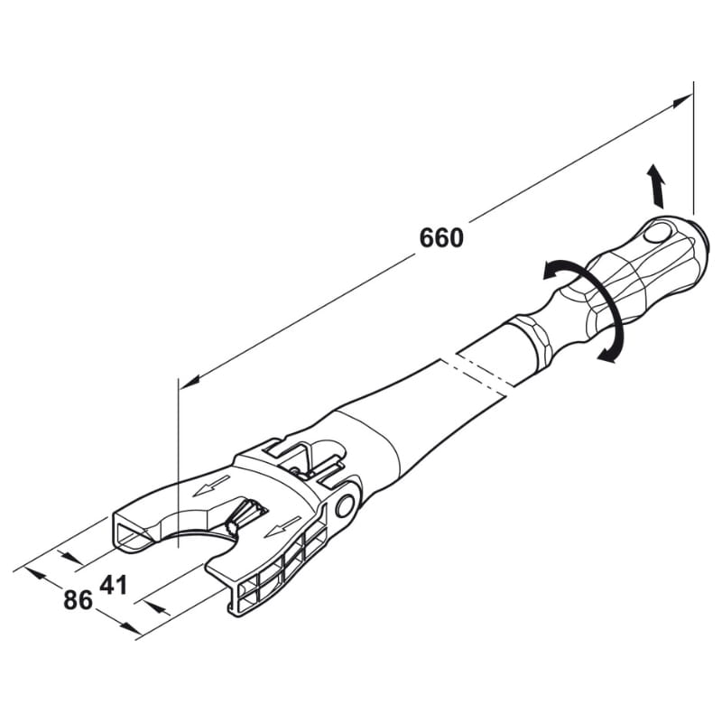 Narzędzie regulacyjne Häfele AXILO 78 przeznaczone jest do ergonomicznej i szybkiej regulacji wysokości systemu cokołowego AXILO 78. Umożliwia ustawianie nóżek w całej strefie cokołu, także w trudno dostępnych miejscach, np. w szafkach narożnych.