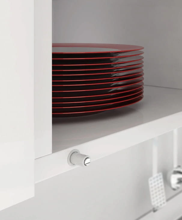 Odbojnik K-Push Tech to nowoczesny mechanizm, który umożliwia otwieranie i zamykanie bez konieczności stosowania tradycyjnych uchwytów czy gałek. Mechanizm działa cicho i jest wyjątkowo trwały, dzięki czemu sprawdza się w różnych typach frontów. Aby otworzyć szafkę, wystarczy delikatnie nacisnąć na front szafki, aby ją otworzyć.