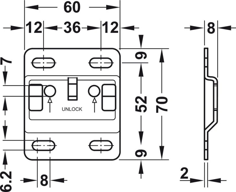 Płytka ścienna Camar 807 Antidrop 60 to stalowy element montażowy przeznaczony do zawieszek Camar 807. Wyposażona w blokadę wypięcia, zwiększa bezpieczeństwo użytkowania i zapobiega przypadkowemu wypięciu szafki z zaczepu.