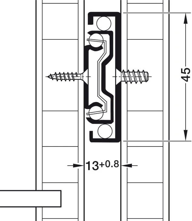 - Zastosowanie: szuflady z frontem wpuszczanym i nakładanym