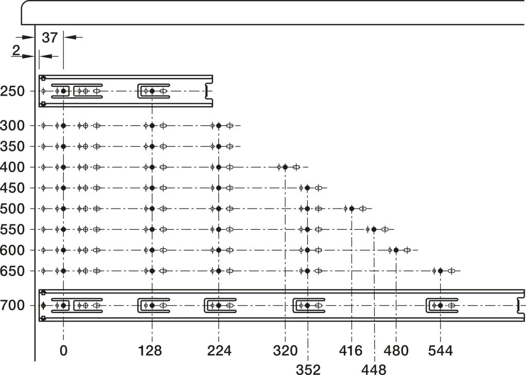 - Zastosowanie: szuflady z frontem wpuszczanym i nakładanym
