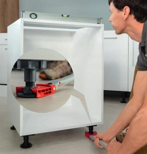 Zestaw AXILO 78 H60 składa się z regulowanej nóżki meblowej oraz kompatybilnej główki mocującej do przykręcania. To praktyczne rozwiązanie stosowane w zabudowach meblowych, umożliwiające ergonomiczną i precyzyjną regulację wysokości cokołów. System AXILO 78 zapewnia wygodę regulacji nawet w trudno dostępnych miejscach, takich jak szafki narożne.