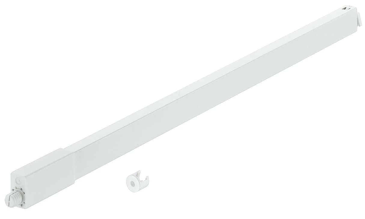 Reling prostokątny z mocowaniem do niestandardowego podwyższenia to element, który pozwala zwiększyć pojemność i funkcjonalność szuflad w systemie Matrix S Slim firmy Häfele. Dzięki solidnej konstrukcji oraz precyzyjnemu wykonaniu umożliwia bezpieczne przechowywanie wyższych przedmiotów, zapobiegając ich przewracaniu lub wypadaniu. Całkowita długość relingu wynosi 350 mm, a jego kolor jest dopasowany do koloru szuflady.