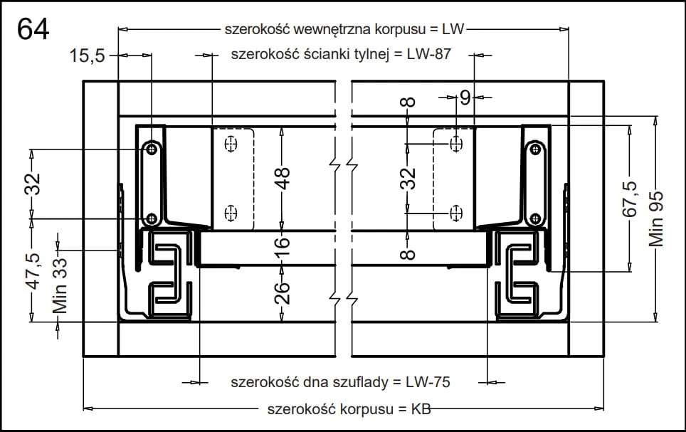 - Prosty montaż i demontaż skrzynki szuflady na prowadnicach