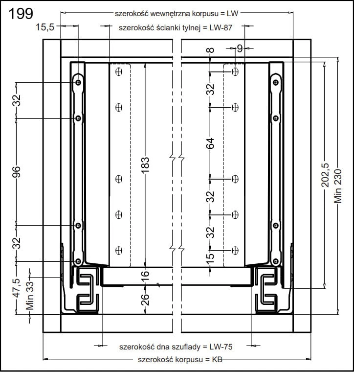 - Prosty montaż i demontaż skrzynki szuflady na prowadnicach