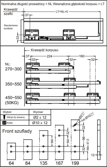 - Prosty montaż i demontaż skrzynki szuflady na prowadnicach
