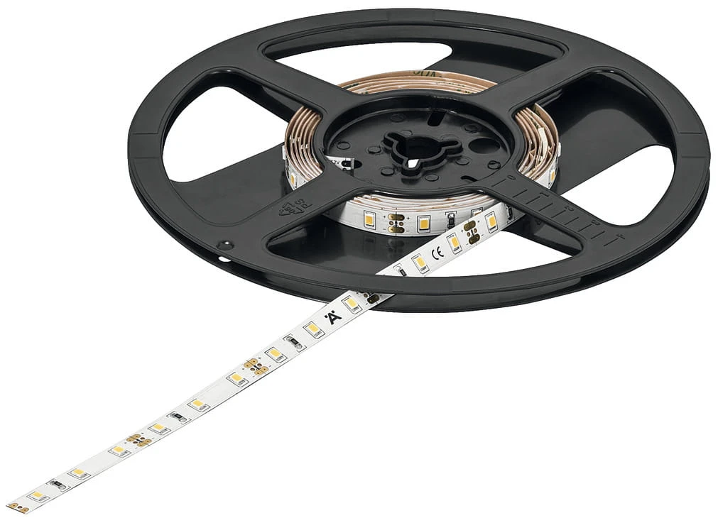 - Maksymalna długość taśmy zależna od mocy zasilacza jest podana w danych technicznych taśm LED. Zalecana do oświetlenia pośredniego. Ze względu na duży rozstaw punkty LED są widoczne. Do oświetlenia bezpośredniego lepiej nadają się taśmy LED z 120 LED/m.